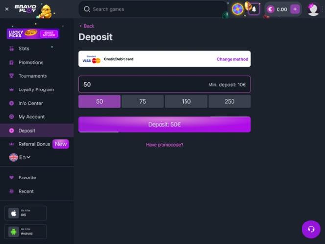 BravoPlay Casino on mielenkiintoinen ja kauniisti suunniteltu iGaming-alusta , joka keskittyy Kanadassa, Isossa-Britanniassa, Saksassa ja Uudessa-Seelannissa asuville uhkapelaajille. Huomaa, että vierailumme aikaan tämä nettikasino toimi ilman uhkapelilupaa.