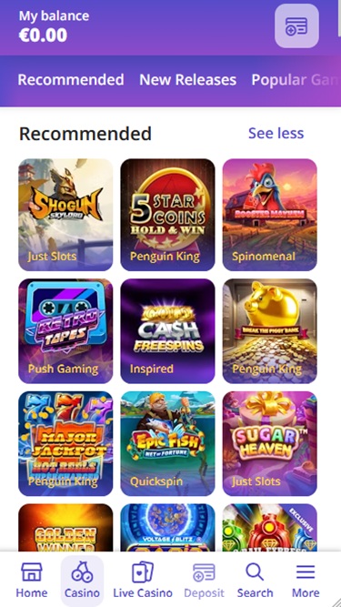 Suositeltuja Megaways-pelejä ovat: Epic Dreams, Temple Tumble, Razor Ways, Ancient Tumble, 3 Lucky Hippos, The Wild Gang, Bonanza, Cai Shen 169, Fortune Llama, Timber Stacks, Gem Fire Frenzy, Big Bad Bison, Gravity Bonanza, Blazing Wilds Megaways, 5 Frozen Charms Megaways, John Hunter Book of Tut Megaways, Beware the Deep Megaways, Big Bucks Bandits Megaways, Dynamite Riches Megaways, Max2 Megaways, Area Cash Heist, Heroes Hunt, Sky Raiders, Scourge of Rome, Christmas Catch, Kingmaker Megaways, Panda Money, Spicy Meatballs, Over the Moon, Retro Tapes, Sugar Rush, Jammin Jars, Tome of Madness, Lady of Fortune, Gems Bonanza, Rise of Olympus, Banana Drop, Extra Juicy, Golden Ticket, Legacy of Dead, Amazing Link Zeus, Tomb of Gold, Big Bonus Booster, Zombie Circus, Amazing Link Riches, Thunderstruck II, Happy Fortune Dragon, The Hand of Midas, Big Fishing Fortune, Retro Sweets Picante Gold Blitz, Money Train 4, Epic Dreams, Ancient Tumble, Retro Sweets, Magic Spins Hold The Jackpot ja paljon muuta.