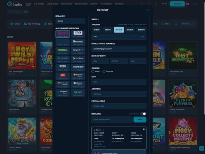 - Vahvistusprosessin loppuun saattamiseksi kasino vaatii pelaajia toimittamaan henkilöllisyystodistuksen. Näihin voi sisältyä voimassa oleva virallinen henkilöllisyystodistus, kuten henkilökortti, passi tai ajokortti, sekä osoitetodistus ja todiste käytetyn maksutavan omistajuudesta.
