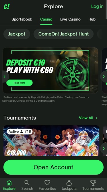 ComeOn Casino Kuvakaappaukset