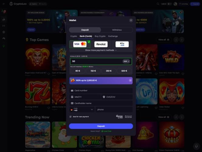 Operaattori tekee yhteistyötä tunnettujen iGaming-alan nimien, kuten BetSoftin, Evolutionin, Quickspinin ja Yggdrasilin, kanssa… CryptoLeon kanssa tekee yhteistyötä monia pienempiä ohjelmistokehittäjiä ja studioita, joten pelaajat voivat luottaa pitävänsä hauskaa tässä nettikasinossa. Varsinkin kun kasinon pelivalikoima on täynnä kaikenlaisten pelaajien suosimia nimikkeitä.