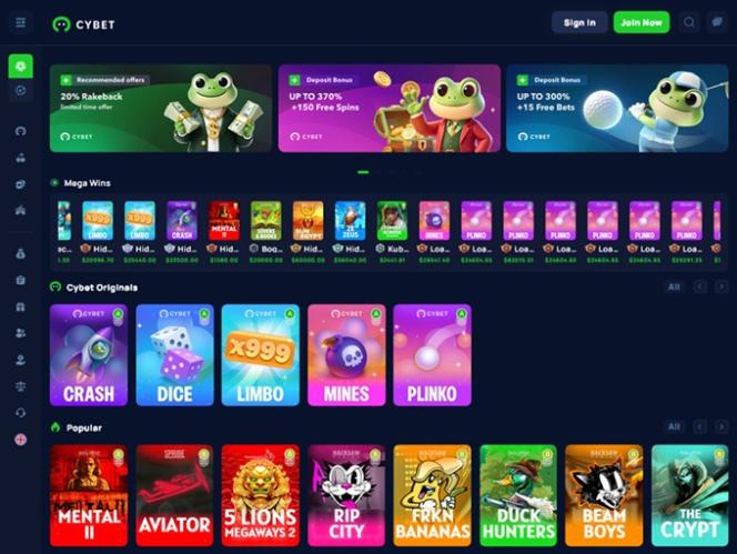 Cybet Casino on kryptovaluuttoihin keskittynyt nettikasino, joka keskittyy tarjoamaan pelaajilleen laajan valikoiman kasinopelejä, kuten oikean rahan kolikkopelejä, live-jakajapelejä, pöytäpelejä ja alkuperäisiä crash-pelejä. Brändi toivottaa tervetulleiksi pelaajat Brasiliasta, Intiasta, Japanista, Etelä-Koreasta, Argentiinasta, Portugalista, Filippiineiltä ja Indonesiasta ja kutsuu heidät mukaan hauskanpitoon ja tutustumaan kaikkiin saatavilla oleviin peleihin, kampanjoihin ja bonuksiin.