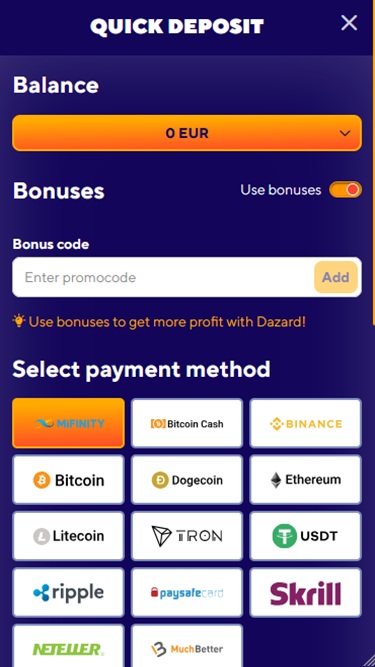 Pankkivaihtoehdot Dazard Casino -sivustolla