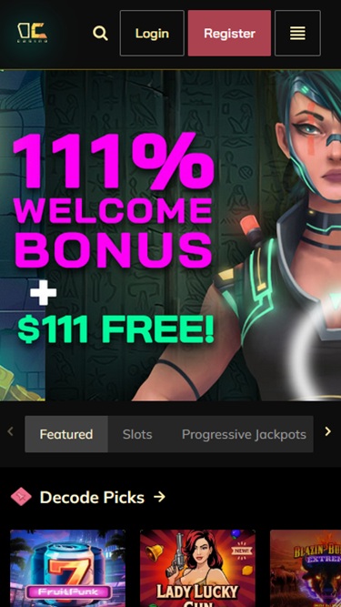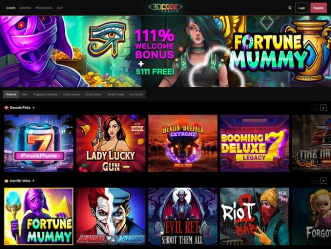 Decode Casino on nettikasino, joka on suunnattu Yhdysvalloista ja Kanadasta tuleville pelaajille. Se on osa samaa konsernia, joka ylläpitää sisarsivustoja Sloto'Cash , Desert Nights, Miami Club ja muita Yhdysvaltoihin suuntautuneita brändejä. Huomioithan, että tämän arvostelun kirjoitushetkellä kasino toimi ilman uhkapelilupaa.