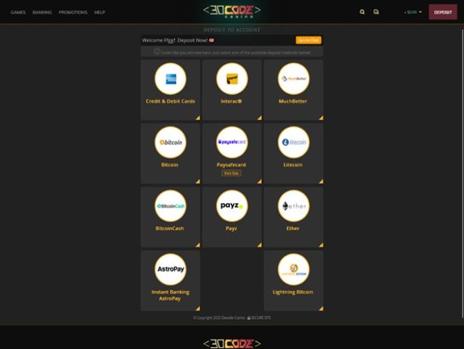 Haluan todella pitää Decoden peleistä ja tehdä talletuksia siellä. Pelivalikoima on uskomattoman houkutteleva, ja pidän todella paljon kasinon tunnelmasta ja siitä, millaista kikkailua ja markkinointityyliä he näyttävät tavoittelevan. Luulen, että se vain vetoaa minun tyyppiseen kohderyhmääni.