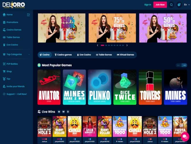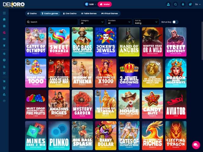 Jos olet kiinnostunut nettiurheiluvedonlyönnistä, huomaa, että Del Oro sisältää houkuttelevia urheilutapahtumia . Kuten tavallista, keskitymme kuitenkin enemmän kasinotarjontaan, joten katsotaanpa sitä!