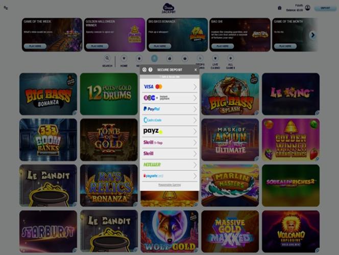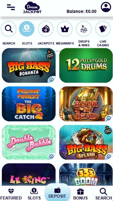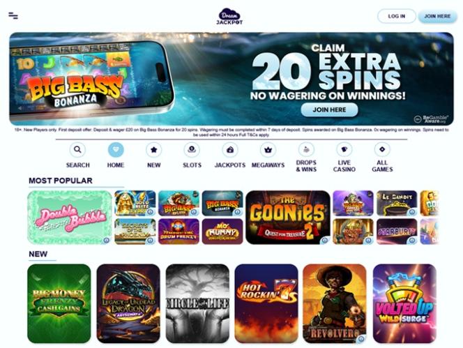 Dream Jackpotia tarjoaa Microgaming, Net Entertainment, BetSoft, 1x2gaming, Big Time Gaming, Evolution Gaming, EYECON, Ezugi, lightningboxgames, Novomatic, Play'n GO, Quickspin, Yggdrasil, Wazdan, Booming Games, Stakelogic, Pragmatic Play, Red Tiger Gaming, Spinomenal, Red Rake Gaming, Skillzzgaming, SYNOT Games, Skywind, Triple Edge Studios, Northern Lights Gaming, Stormcraft Studios, All41 Studios, Gluck Games, Gameburger Studios, Pulse 8 Studios, Neon Valley Studios, Golden Rock Studios, SpinPlay Games, HungryBear Gaming, Real Dealer Studios, GONG Gaming, Games Global, Wizard Games, Aristocrat, bluberi, Blueprint Gaming, Greentube, NeoGames, Pariplay, Inspired Gaming, Gaming Realms, Gamomat, Reel Time Gaming, Bally Wulff, Iron Dog Studio, Old Skool Studios, Foxium, Just For The Win, Reflex Gaming, PearFiction Studios, Wild Streak Gaming, Slingshot Studios, Fortune Factory Studios, 4ThePlayer, Gamevy, Crazy Tooth Studio, ReelPlay, Alchemy Gaming, Snowborn Games, Hacksaw Gaming, Gold Coin Studios, Half Pixel Studios, Slotmill, Lucksome Gaming, Area Vegas, Leap Gaming, Wishbone Games, HammerTime Games, INO Games, Nailed It! Games, Atomic Slot Lab, Neko Games, Reel Kingdom, Oros Gaming and Indigo Magic , ja sen pelit tarjotaan verkkopohjaisen pikapelialustan kautta, joka latautuu suoraan internetselaimesi kautta. Myös mobiiliyhteensopivuus on huomioitu, joten pelaamista voi tehdä älypuhelimilla ja tableteilla.