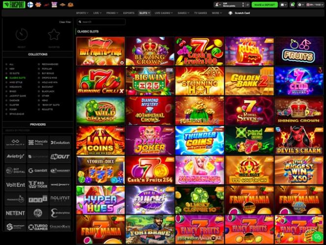 Fansport on koonnut upean kokoelman kasinopelejä tutkittavaksi, ja uskomme, että jopa kokeneimmat pelaajat nauttivat kaikkien tarjottujen pelien selaamisesta. Piditpä sitten nettikolikkopeleistä, perinteisistä pöytäpeleistä, jännittävistä live-jakajapeleistä tai erilaisista erikoisjulkaisuista, löydät aina jotain uutta ja jännittävää kokeiltavaksi.