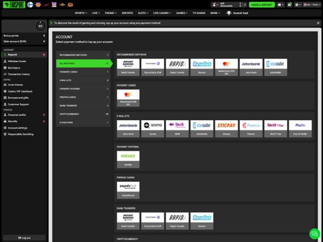 Ensi silmäyksellä Fansport Casino keskittyy ensisijaisesti tarjoamaan pelaajilleen urheiluvedonlyöntivaihtoehtoja. Mutta kun katsot asiaa tarkemmin, huomaat, että brändillä on valtava kirjasto nettikolikkopelejä, live-jakajia, pöytäpelejä, crash-pelejä ja muita nettikasinoaktiviteetteja. Tätä fantastista viihdevaihtoehtojen valikoimaa täydentää tuottoisa kampanjasuunnitelma, joka on täynnä erilaisia bonuksia. Kasino hyväksyy kryptovaluuttoja ja perinteisiä maksutapoja, joten voit tallettaa ja kotiuttaa useilla tavoilla.