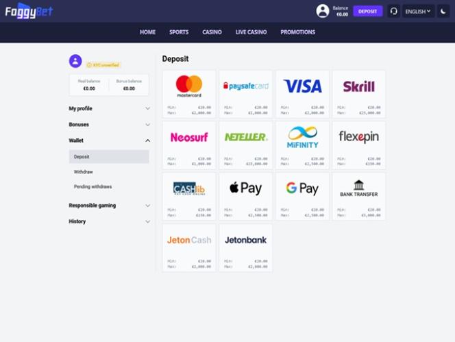 Pelaajat voivat valita useista turvallisista maksutavoista, kuten luotto- ja pankkikorteista, suosituista e-lompakoista, kuten Netelleristä ja Skrillistä , tilisiirroista ja muista verkkomaksuvaihtoehdoista. Silti tämä kasino ei vierailumme aikaan tukenut kryptovaluuttoja tai kryptolompakoita .