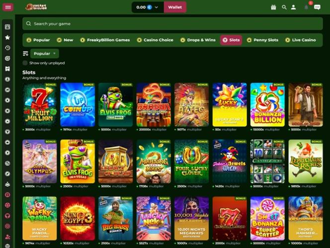 Suurin osa FreakyBillion-kasinon peleistä on yksikätisiä rosvoja, ja tällä sivustolla olevien pelinvalmistajien valtavan määrän perusteella olemme varmoja, että löydät juuri oikean kolikkopelin , joka sopii parhaiten pelityyliisi.