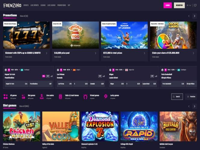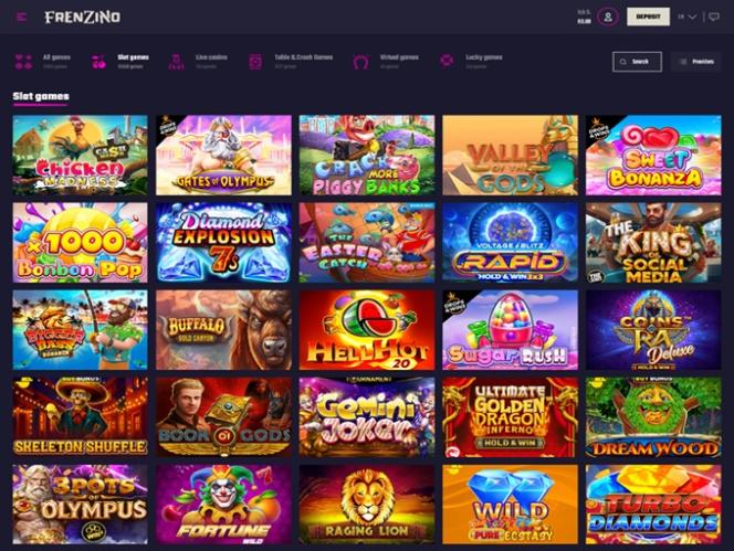Frenzino on kryptoystävällinen nettikasino ja vedonlyöntisivusto , joka toimii Kahnawaken lisenssillä. Se tarjoaa tuhansia kasinopelejä, kuten kolikkopelejä, pöytäpelejä, kuten baccaratia, rulettia ja blackjackia, sekä crash-pelejä ja virtuaalipelejä.