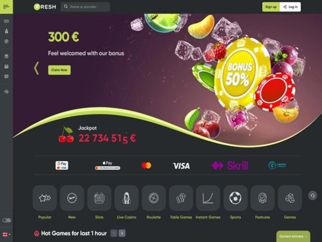 Galaktika NV tietää ehdottomasti, miten luoda hyvä visuaalinen brändäys kasinolle ja miten yhdistää tarttuva brändinimi alustan suunnitteluun ja sen sisältöön. Tämä pätee myös Fresh Casinoon.