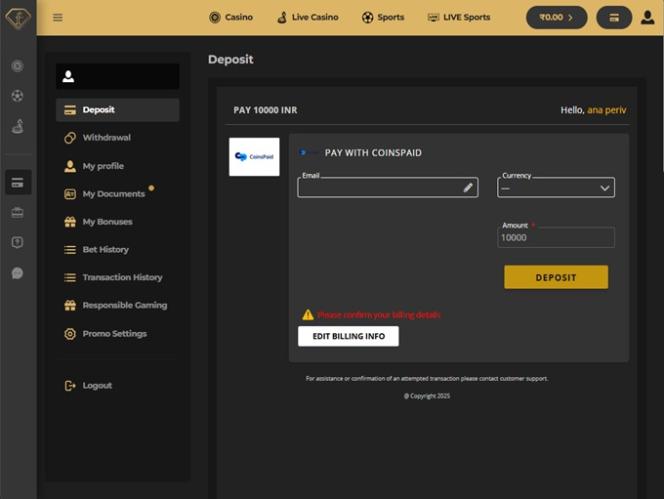 Lisäksi brändi hyväksyy perinteisinä maksutapoina pankkisiirron ja UPI :n. Valitettavasti pelaajat eivät voi hallita varoja luotto- tai pankkikorteilla, sähköisillä lompakoilla tai prepaid-korteilla.