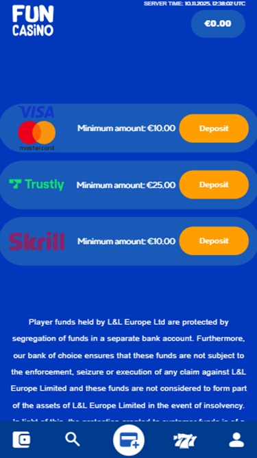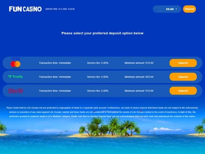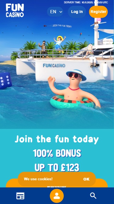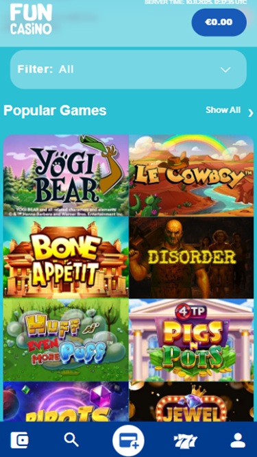 Fun Casinon takana on Microgaming, Net Entertainment, 1x2gaming, Amatic Industries, Barcrest, Big Time Gaming, ELK Studios, Evolution Gaming, EYECON, lightningboxgames, Novomatic, Play'n GO, Relax Gaming, Thunderkick, Pragmatic Play, Nolimit City, Red Tiger Gaming, IGT, Spinomenal, Triple Edge Studios, Northern Lights Gaming, Stormcraft Studios, All41 Studios, Gameburger Studios, Neon Valley Studios, Shuffle Master, SpinPlay Games, GONG Gaming, Buck Stakes Entertainment, Games Global, Bally Technologies, Blueprint Gaming, Greentube, Merkur Gaming, NextGen, NYX Interactive, WMS, Inspired Gaming, SG Interactive, Red7Mobile, Reel Time Gaming, Iron Dog Studio, Foxium, Just For The Win, Wild Streak Gaming, Slingshot Studios, Fortune Factory Studios, 4ThePlayer, Crazy Tooth Studio, High 5 Games, Alchemy Gaming, Black Pudding Games, Hacksaw Gaming, Half Pixel Studios, Eurostar Studios, Aurum Signature Studios and Lucksome Gaming , ja kasinon pelit tarjotaan verkkopohjaisen pikapelialustan kautta, joka latautuu suoraan tietokoneesi internetselaimen kautta. Ladattavia ohjelmistoja ei ole, ja voit halutessasi pelata myös älypuhelimellasi tai tabletillasi.