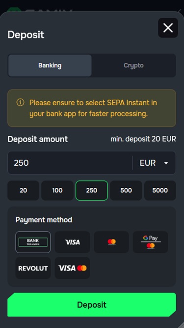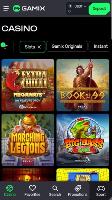 Verkkosivuston suunnittelijat käyttivät brändin neonväristä, futuristista teemaa, joka täydensi täydellisesti Gamixin modernia luonnetta. Kasino loi tilan, jolla oli paljon persoonallisuutta ja huomiota herättäviä tehosteita yhdistämällä teräviä vihreän sävyjä rauhoittaviin harmaisiin taustoihin.