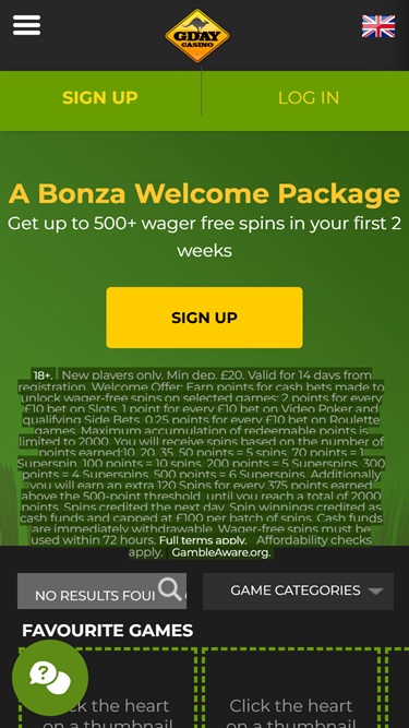 Alla on luettelo G'Day Casinon tällä hetkellä tarjoamista kampanjoista.