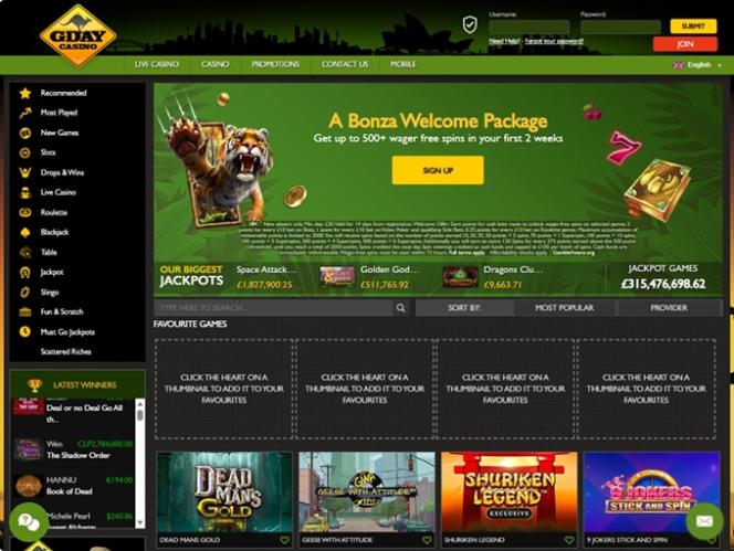 G'Day Casino on vuonna 2013 perustettu nettikasino, joka keskittyy vedonlyöntiin Australian väestölle. Kasinon omistaa ja sitä ylläpitää Caddell Limited NV, ja se on saanut kiitosta pelivalikoimastaan, mutta sitä on myös moitittu pelaajien voittojen säilyttämisestä 48 tuntia ennen maksujen käsittelyä.Kasinotiedot