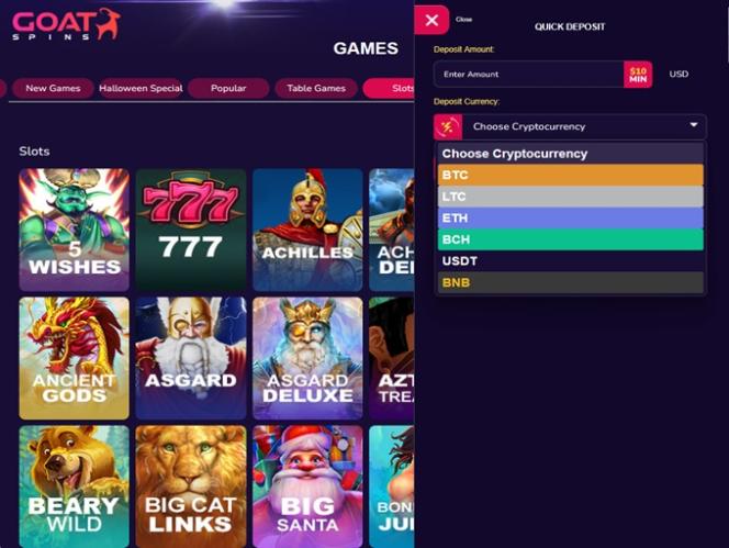 Goat Spins Casino on kryptokasino , joka on suunnattu pääasiassa Yhdysvalloissa asuville pelaajille. Vierailumme aikaan se toimi ilman uhkapelilupaa.