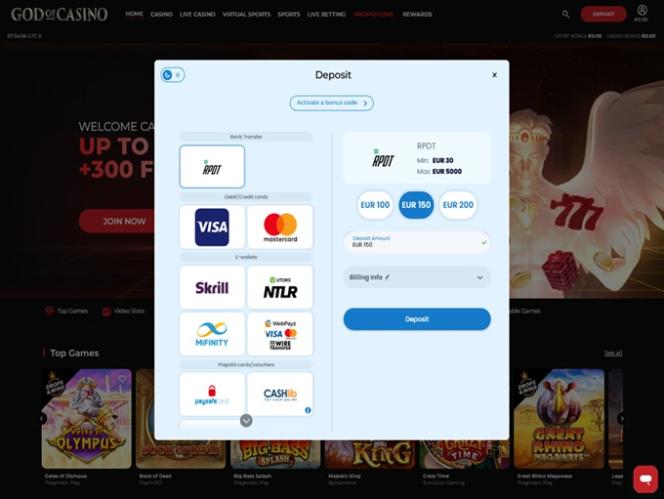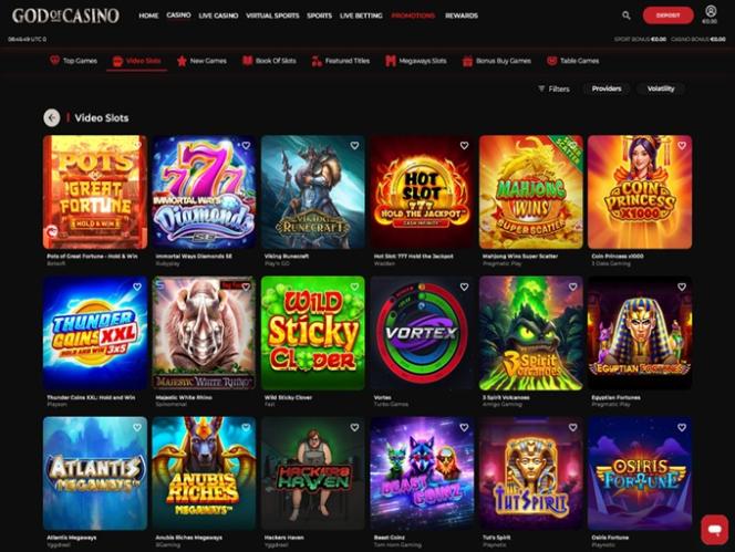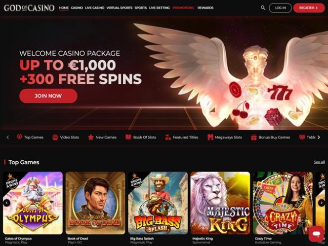 God of Casino toivottaa tervetulleiksi pelaajat Kanadasta, Saksasta, Itävallasta ja Irlannista. Se lupaa tarjota heille kattavan valikoiman peli- ja urheiluvedonlyöntivaihtoehtoja. Brändillä on laaja kasinopelien kirjasto, mukaan lukien nettikolikkopelit, live-jakajapelit, pöytäpelit ja crash-pelit, sekä vankka valikoima urheiluvedonlyöntivaihtoehtoja, kampanjoita ja bonuksia.