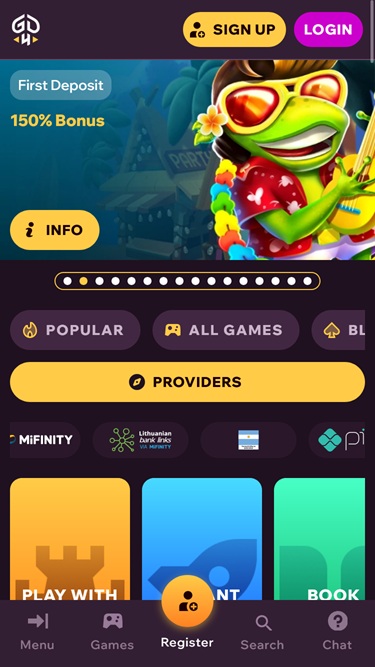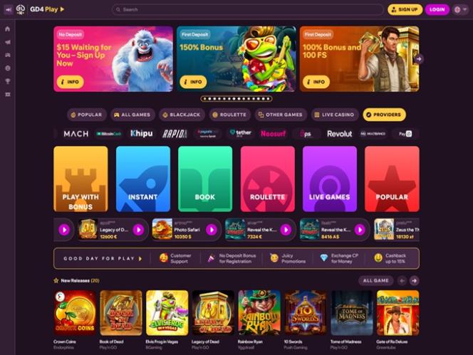 GoodDayForPlay Casinon tarjoaa Net Entertainment, Playtech, Amatic Industries, Novomatic, Play'n GO, playson, Quickspin, Thunderkick, Yggdrasil, Endorphina, IGT, Booongo, Spinomenal, Red Rake Gaming, Belatra Games, BGAMING, Evoplay, Pocket Games Soft, SmartSoft Gaming, Amusnet Interactive, Aristocrat, Ash Gaming, Blueprint Gaming, Greentube, Push Gaming, Konami, Apollo Games, RubyPlay, Rarestone Gaming, 3 Oaks Gaming, Spribe and Elbet , ja sen pelit tarjotaan verkkopohjaisen alustan kautta, jonka avulla voit pelata pelejä internetselaimesi kautta. Mobiilisivusto on saatavilla myös pelaajille, jotka haluavat pelata liikkeellä ollessaan.