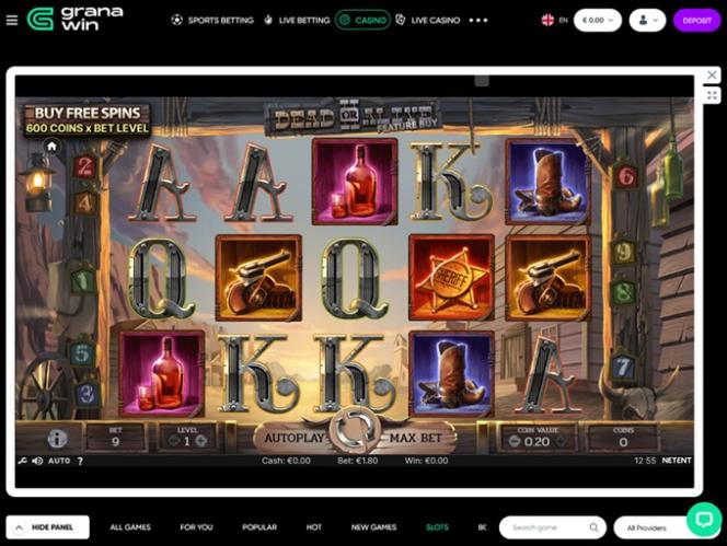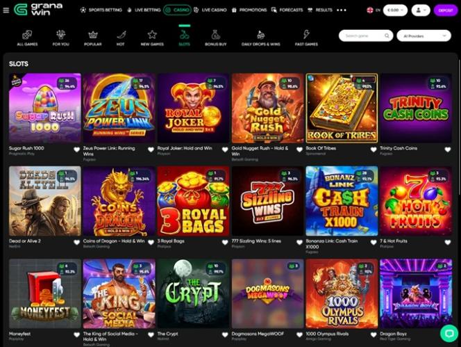 GranaWin on monipuolinen nettikasino, joka avasi ovensa vuonna 2024 ja on houkutellut verkkosivustolleen suuren yleisön kanadalaisia, saksalaisia , sveitsiläisiä ja itävaltalaisia pelaajia tarjoamalla laajan kirjaston kasinopelejä ja urheiluvedonlyöntivaihtoehtoja sekä vankan kampanjaohjelman, jossa on runsaita bonuksia ja palkintoja. Brändillä on valtava kirjasto kolikkopelejä, live-jakajia, pöytäpelejä ja crash-pelejä pelaajien nautittavaksi.