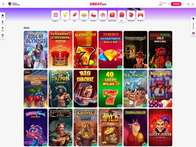 GREATwin Casinolla on puhdaslinjainen, minimalistinen design ja paljon houkuttelevia yksityiskohtia. Kaikki on täällä paikoillaan ja houkutteleva pelitarjonta on sivuston keskipiste.