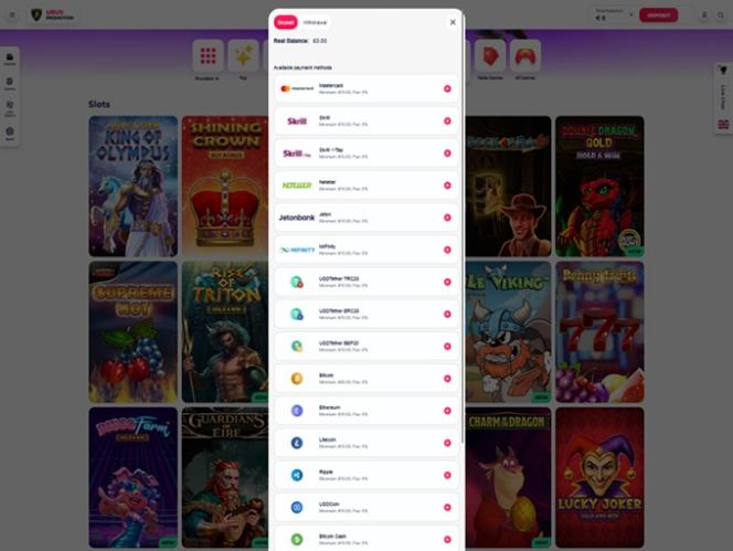 ”Kassa”-osiossa on tarjolla erilaisia maksuvaihtoehtoja heidän uhkapelialueellaan, mukaan lukien kryptovaluuttoja käyttävät maksutavat , prepaid-maksut, luotto- ja pankkikortit, e-lompakot, pikatilisiirrot…