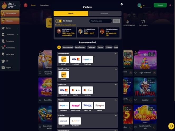 Kampanjavälilehti sisältää esittelytarjouksen, jota voi käyttää kahdella ensimmäisellä talletuksella HellSpinissä. Aktiiviset pelaajat voivat myös luottaa anteliaisiin viikoittaisiin tarjouksiin ja reload-bonuksiin sekä jännittäviin kolikkopeliturnauksiin.