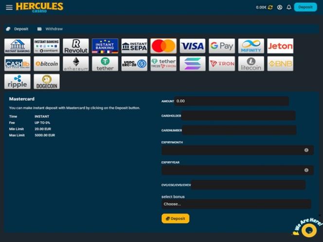 Vuonna 2026 perustettu Hercules Casino on monipuolinen nettikasino, joka tarjoaa laajan pelivalikoiman, mukaan lukien yli 5 000 ainutlaatuista oikean rahan kolikkopeliä, live-jakajapeliä, pöytäpeliä ja pikavoittopelejä. Sivusto toivottaa tervetulleiksi pelaajat Ranskasta, Kanadasta, Belgiasta, Saksasta, Itävallasta, Tanskasta ja Norjasta ja kutsuu heidät kokeilemaan fantastisia pelejään, kampanjoitaan ja bonuksiaan.