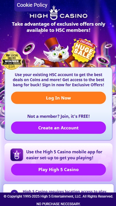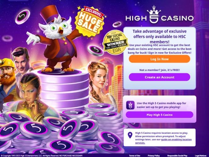 High 5 on yksi sosiaalisen pelimaailman vakiintuneimmista nimistä, ja se tuo vuosikymmenten kokemuksen kivijalkakasinoiden kehittämisestä arpajaismarkkinoille. Sivusto tarjoaa valtavan valikoiman kasinotyyppisiä pelejä, mukaan lukien laaja kokoelma nettikolikkopelejä ja live-jakajia. Brändi on avoin pelaajille kaikkialla Yhdysvalloissa, ja rajoitettuja alueita ovat muun muassa Idaho, Michigan, Nevada ja Washington.
