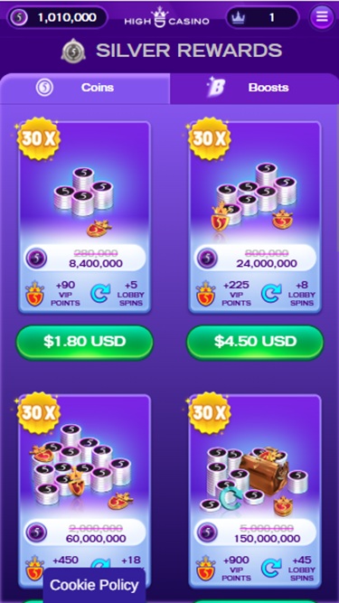 Kampanjat ovat tärkeä osa High 5 -kokemusta, ja kaikki alkaa merkittävällä rekisteröitymisbonuksella, joka koostuu Game Coinsista, Sweeps Coinsista ja timanteista. Ne tarjoavat huomattavan aloitussaldon, jonka avulla voit selata kaikkia pelejä ja löytää mieltymyksiisi parhaiten sopivan.