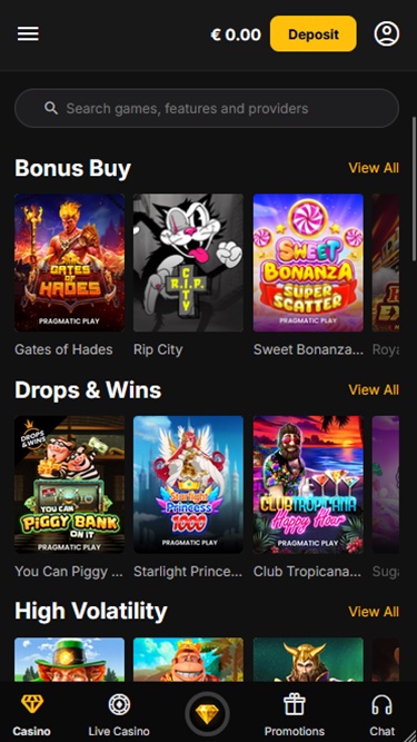 Vaikka estetiikasta on vaikea puhua ja meillä kaikilla voi olla henkilökohtaisia mieltymyksiä, meidän on sanottava, että tämä on kauniisti suunniteltu kasino, jossa on ihana ja käyttäjäystävällinen käyttöliittymä. Minimalistinen mutta tyylikäs kasino huokuu rauhoittavaa tunnelmaa syvän sinisen sävyillään ja kullanvärisillä yksityiskohdillaan, jotka havainnollistavat ylellisyyttä ja tunnettuja kasinosymboleita.