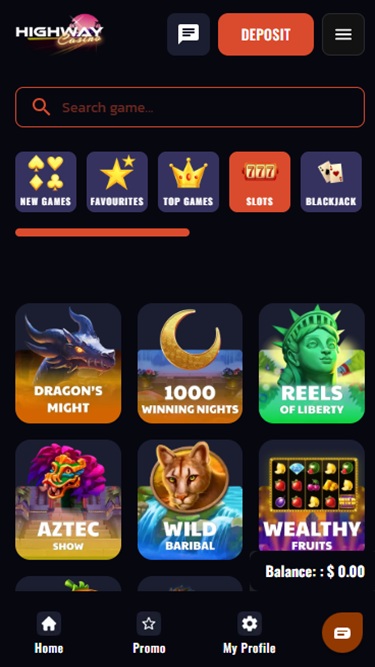 Highway Casinon takana on Real Time Gaming, BetSoft, Rival, Saucify, Visionary iGaming, Betgames, Nucleus Gaming, Spadegaming, BGAMING, Genii, Wager Gaming, Dragon Gaming, FastSpin, Dragoon Soft and Urgent Games , ja sivuston pelit toimivat internetselaimesi kautta. Sivusto on houkutteleva ja helppokäyttöinen, ja siellä on hakupalkki, joka on hyvä tiettyjen pelien löytämiseen. Highway tukee täysin myös mobiilipelaamista, joten voit pelata puhelimellasi tai tabletillasi, jos haluat.Muut pelit