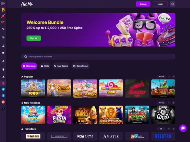 Vuonna 2024 markkinoille noussut Hit Me Bet Casino astui nettikasinomaailmaan ryminällä esittelemällä pelaajille upean valikoiman nettikolikkopelejä, pöytäpelejä, live-jakajia, pikapelejä, raaputusarpoja, bingoja ja virtuaaliurheilua, tarjoten samalla palkitsevan kampanjasuunnitelman ja kanta-asiakasohjelman. Brändi hyväksyy myös useita kryptovaluuttoja, kuten Bitcoinin ja Ethereumin, joten voit nauttia krypton eduista, kuten nopeammista kotiutuksista.