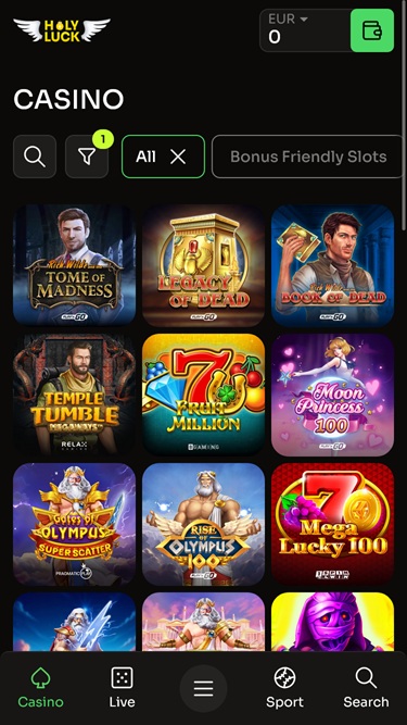 Vuonna 2025 perustettu Holyluck on nettikasino, joka tarjoaa kattavan uhkapelikokemuksen. Tarjolla on tuhansia nettikolikkopelejä, live-jakajia, pöytäpelejä ja crash-pelejä, kaikki kattavalla valikoimalla kampanjoita ja bonuksia. Brändi hyväksyy pelaajia pääasiassa Saksasta, Belgiasta ja Irlannista.
