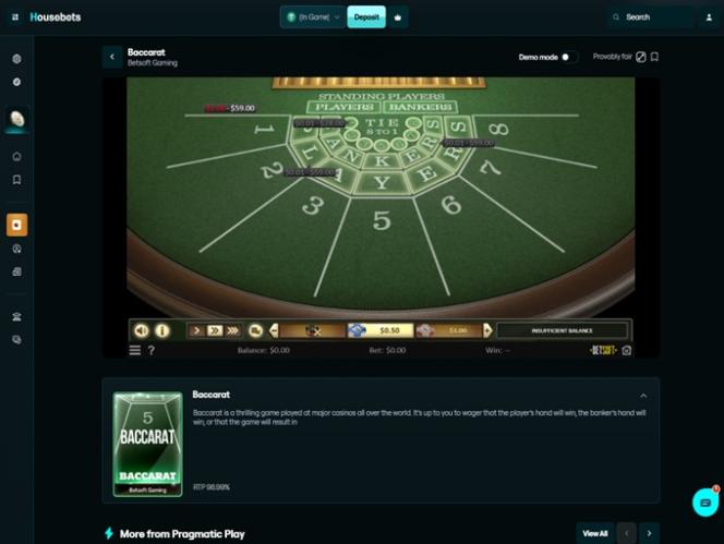 Housebets Casino on globaalisti suuntautunut nettikasino, joka tarjoaa monipuolisen pelivalikoiman ja toimii myös kattavana vedonlyöntisivustona, joka monien muiden ominaisuuksien ohella tukee live-vedonlyöntiä.