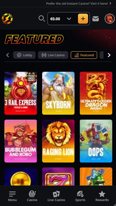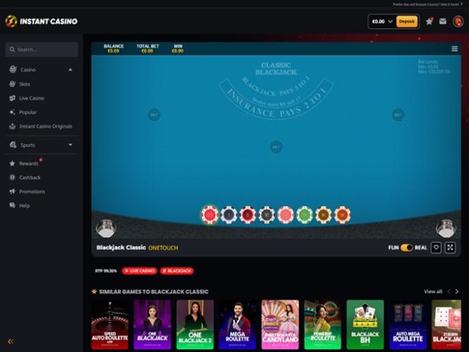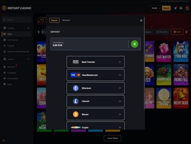 Mainittakoon myös, että Instant Casino on kryptoystävällinen verkkosivusto , joka isännöi huippuluokan kasinopelejä eri genreistä, mukaan lukien live-jakajapelit ja kategoriat, kuten ruletti , blackjack , baccarat , pokeri , peliohjelmat ja paljon muuta. Mukana on kanta-asiakasohjelma sekä houkuttelevia tarjouksia ja turnauksia.