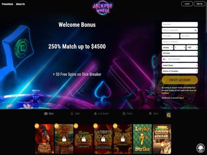 Jackpot Wheel Casino on Ardway Limitedin omistama ja ylläpitämä online-vedonlyöntisivusto, joka avasi ovensa vuonna 2016. Kasino palvelee amerikkalaisia vedonlyöntimarkkinoita ja tarjoaa pelaajille useita kolikkopelejä ja pöytäpelejä sekä tietokoneilla että mobiililaitteilla. Valitettavasti kaikki ei ole ruusuilla tanssimista Jackpot Wheelillä, sillä kasinolla on 48 vuoden odotusaika voitoille, alhaiset kotiutusrajat ja normaalia hitaammat maksuajat. Toinen ongelma on se, että kasinolla ei ilmeisesti ole pelilisenssiä, minkä vuoksi pelaajilla ei ole minkäänlaista valtion tahoa tukenaan riitatilanteissa.