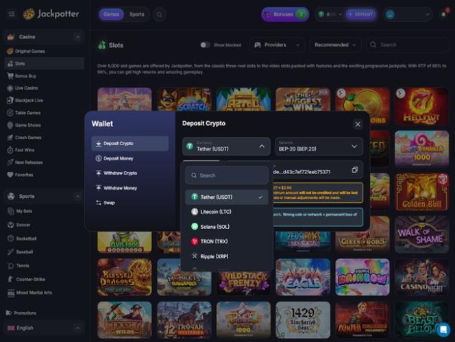Kasinon lompakko tarjoaa sinulle vaihtoehtoja kryptovaluuttojen, fiat-valuuttojen tallettamiseen ja nostamiseen tai kryptokolikkovaihtoon. ADA, BCH, BTC, DOGE, DOT, EOS, ETH, LTC, SOL, TON, TRX, TRY, USDC, USDT ja XRP ovat joitakin käytettävissä olevia valuuttoja tapahtumille.