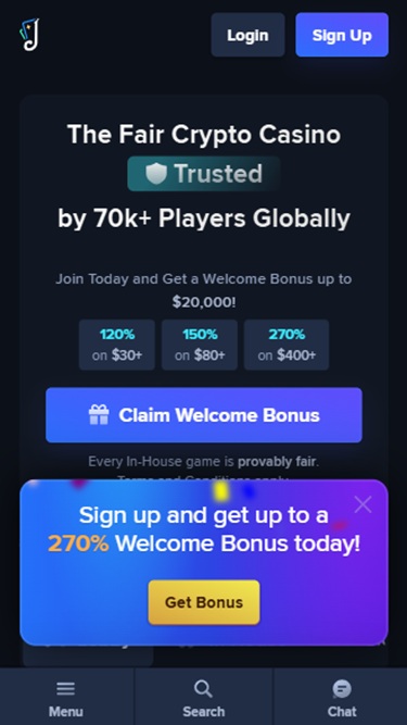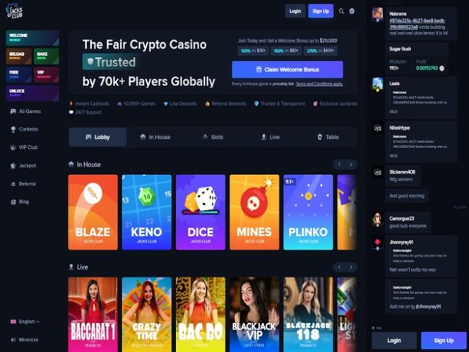 JacksClub Casino on kryptovaluuttoihin keskittynyt uhkapelialusta, jossa on integroitu todistettavasti reilu järjestelmä, joka takaa pelitulosten oikeudenmukaisuuden ja todennettavuuden. Se hyväksyy useita valuuttoja, kuten Bitcoinin, Bitcoin Cashin , Dogecoinin , Litecoinin , Ethereumin , Tetherin , Tronin , Ripplen ja JacksClub Coinin. Valitettavasti tämä moderni maksutapa tarkoittaa, että pelaajat eivät voi käyttää perinteisiä vaihtoehtoja, kuten pankkikortteja ja sähköisiä lompakoita talletuksiin ja kotiutuksiin.