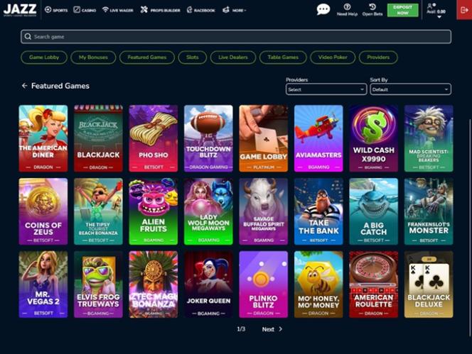 Jazz Casino And Sportsbook on myös koti 133 muut alla luetellut pelit: