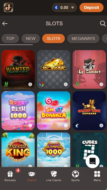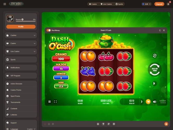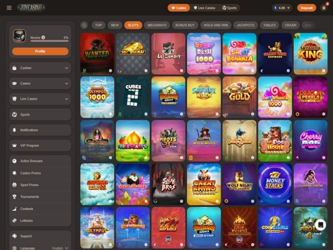 Joy Casinolla on pelattavissa satoja videoslotteja, ja sivustolla on myös hyvä valikoima klassikkopelejä onnen testaamiseen. Voitettavissa on myös monia progressiivisia jättipotteja, jotka voivat muuttaa pelaajan välittömästi miljonääriksi, jos hän osuu voittoyhdistelmään.