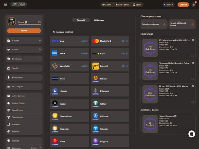 Joy Casino on Pomadorro NV:n vuonna 2014 perustama nettivedonlyöntisivusto. Kasinolla on laaja valikoima pelejä, nopeat maksuajat ja houkutteleva ulkoasu, jotka tekevät Joy Casinosta erinomaisen vaihtoehdon, jos etsit uutta pelipaikkaa.