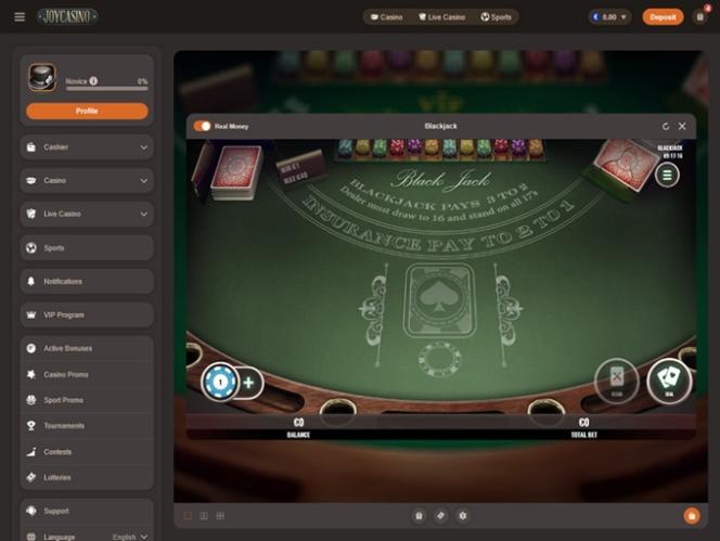 Tavallisten kasinopelien lisäksi Joy Casino tarjoaa asiakkailleen live-jakajapelejä.
