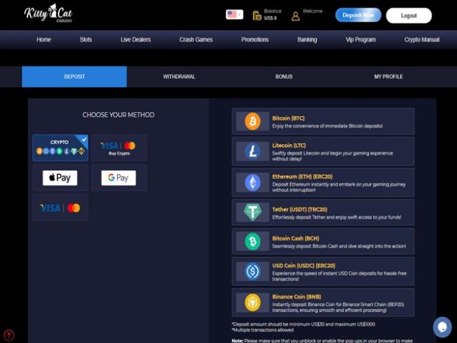 💰 Min Deposit$25 (Crypto)/$30 (Credit/Debit Cards)