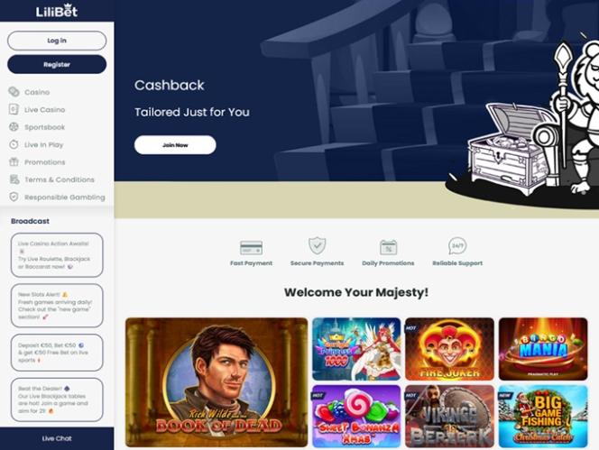Ensivaikutelmamme Lilibetistä on, että tämä brändi keskittyy pelaajiin. Sivusto huokuu yksinkertaisuutta ja sillä liikkuminen on superhelppoa. Kasinoalusta on hyvin organisoitu, ja vasemmalla puolella oleva päävalikko sisältää pääkategorioita, kuten kasino, livekasino ja vedonlyönti. Lisäksi voit vierailla "Live In Play" -osiossa, joka on varattu live-urheiluvedonlyönnille . Tarjolla on myös muita vaihtoehtoja, kuten kampanjat, käyttöehdot ja vastuullinen pelaaminen – joten Lilibetissä kaikki on melko suoraviivaista.