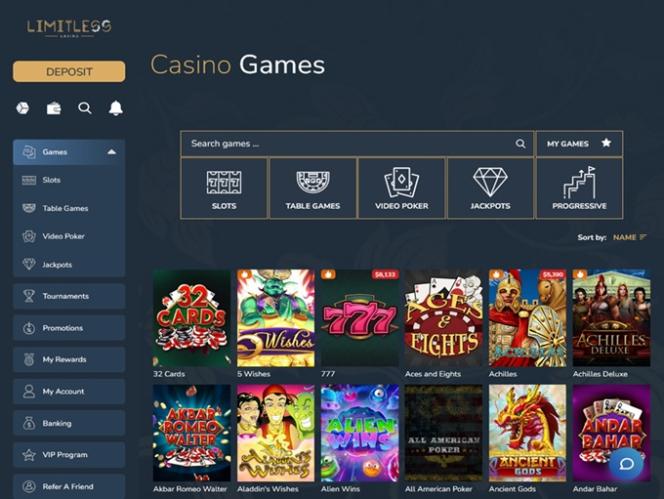 Limitless Casinon käyttämällä kasinoalustalla on tumma tausta, jossa on paljon syvän sinisiä, harmaita ja kultaisia yksityiskohtia sekä mielenkiintoisia graafisia kuvituksia, jotka näyttävät tyylikkäiltä ja eleganteilta ja ovat samalla myös hauskoja ja viihdyttäviä. Vaikka live-jakajakasino puuttuukin, kasinolla on tarjolla monia muita pelityylejä pelaajille, ja kaikki osiot ovat hyvin organisoituja.