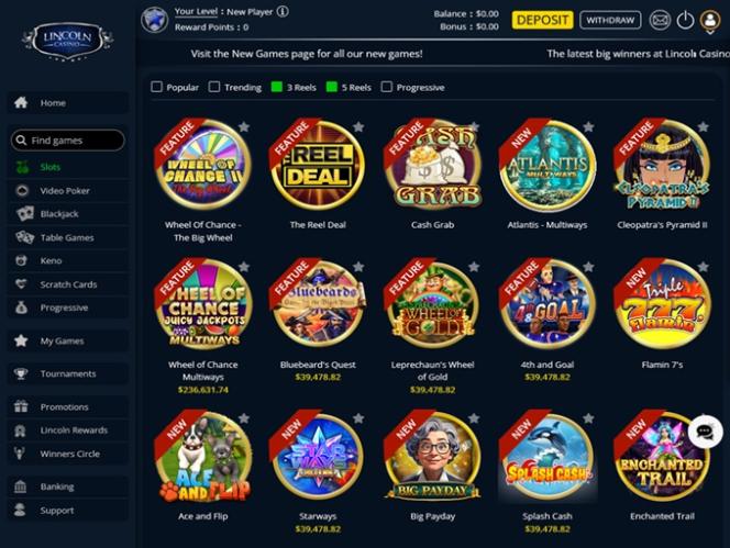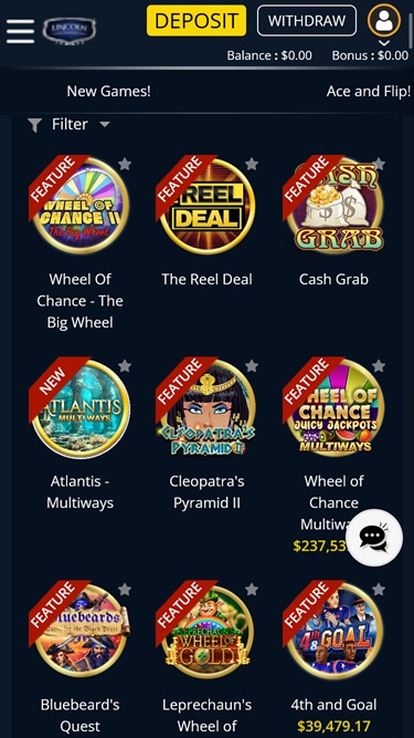 Lincoln Casino on myös koti 9 muut alla luetellut pelit: