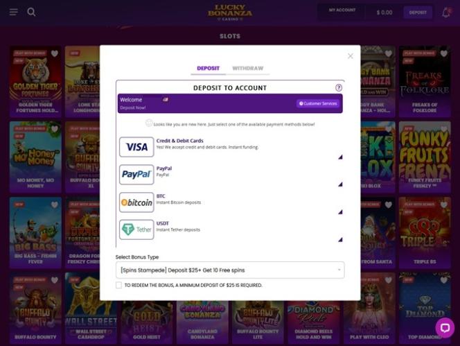 Kaikki vakavasti otettavat nettikasino-operaattorit pyrkivät tarjoamaan kasinon kassalle luotettavia maksuvaihtoehtoja. Lucky Bonanza on yksi niistä, sillä pelaajilla on käytettävissään sekä perinteisiä että kryptovaluutoilla tehtäviä maksutapoja, kuten maksukortteja, tunnettuja e-lompakoita ja muita pankkijärjestelmiä.